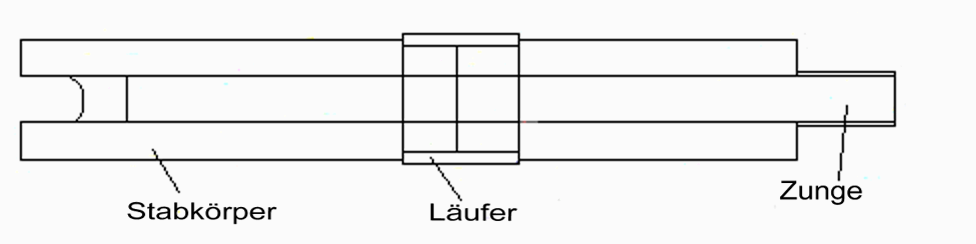 Bevor man das Rechnen mit dem Rechenschieber erlernen kann, sollte man einige Grundbegriffe kennen. Der Rechenschieber besteht aus drei Teilen, aus dem Stabkörper, dem Läufer und der Zunge. (Abb. 2)